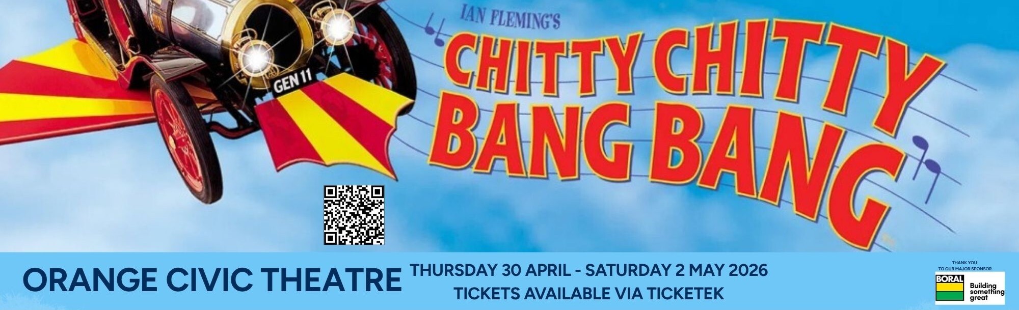 We are proud to present Ian Fleming's Chitty Chitty Bang Bang at Orange Civic Theatre. Thursday 30 Apr - 2 May 2026 tickets available now through Ticketek.